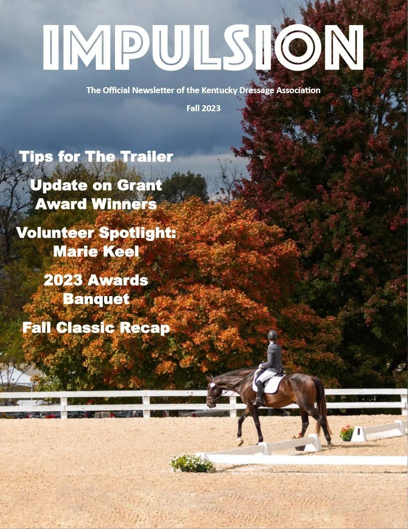 Features include a fare well letter from the Past President of the KDA-Cindy Smith, Michelle Morehead's review of the USDF Convention, a behind the scenes look at safety at the KDA shows, The Neigh with Karen Taylor, calendars and info for the need to know!